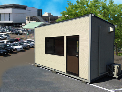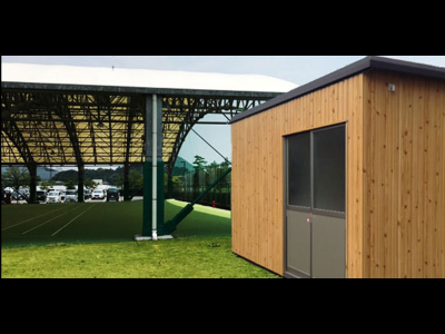 事務所や控室、更衣室として活用できます。給排水設備が不要で設置後の移動も可能です。芝生も傷めません。