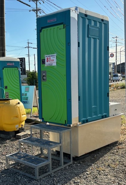 浄化槽が設置が出来ない・排水路が出来ない所で水洗式トイレが好評を頂いています。レンタル・新棟販売・中古販売も出来ます。 |