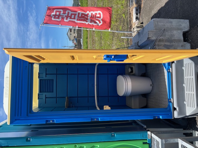 魔法のトイレ付多目的ハウス・給排水設備が要らない水洗式トイレ・電源が有れば水洗式トイレ・エアコンも使用が出来ます。レンタル・中古販売も出来ます。